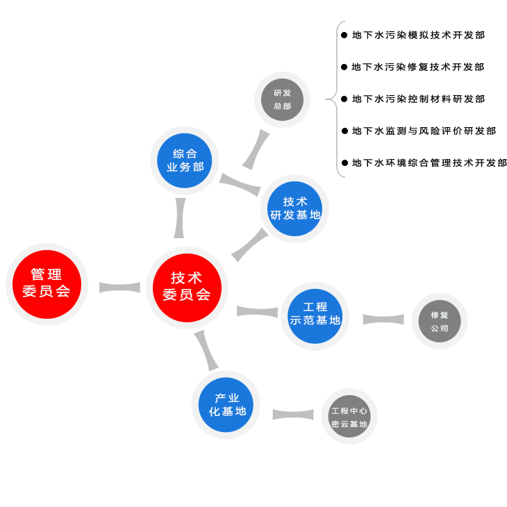 为了更好地贯彻和完善工程中心的各项管理工作,保证各项重大决策的科学化、民主化和规范化。因此工程中心建立了健全合理的组织机构,工程中心特设立管理委员会、技术委员会,下设技术研发部、工程示范基地和产业化基地等机构。地下水污染控制与修复教育部工程研究中心机构设置见下图。